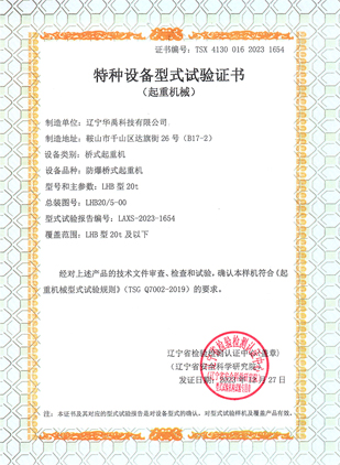 LDP電動(dòng)單梁型式試驗(yàn)合格證